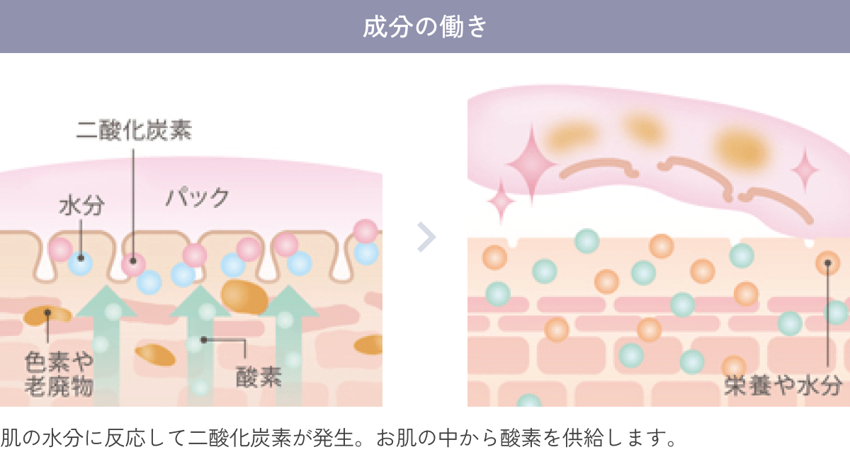 塗るだけで肌の水分と反応してCO2を生成し、ボーア効果で血行促進とターンオーバーをうながし、透明感とハリのある肌へ。