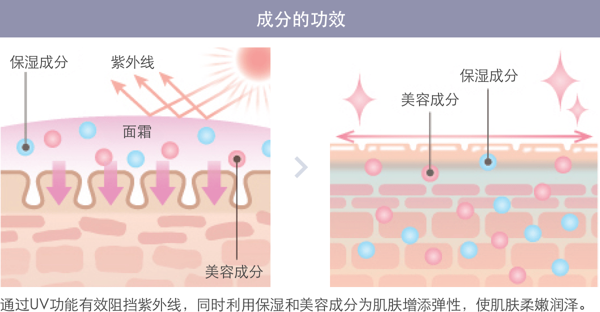 “美容液控色防晒霜”可作为最后的顶层涂层使用。它将五大功能合为一体:修正肤表不平、控色、精华、美容防晒和化妆底霜。它不仅提供紫外线防护,还能通过丰富的保湿成分为肌肤提供深层滋润,帮助锁住水分,全面守护肌肤。
